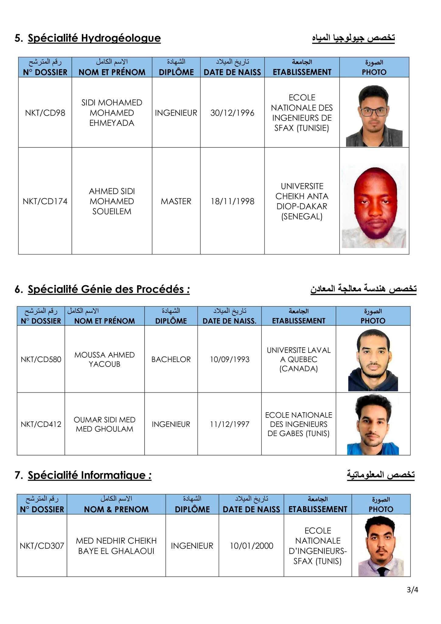 ودعت الشركة المعنين للإتصال بقطاع التسيير الإستشرافي للمصادر البشرية في نواذيبو لإستكمال الإجراءات التوظيفية في اجل اقصاه 18 اغسطس 2025م.