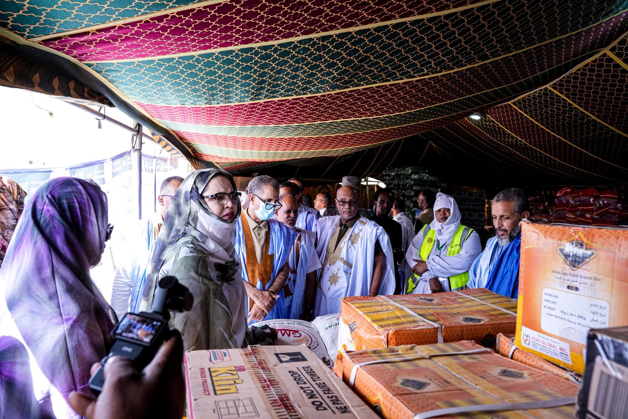 زينب بنت أحمدناه، رفقة ولاة ولايات نواكشوط الثلاث، ورئيس اتحاد أرباب العمل الموريتانيين، اليوم السبت، زيارة تفقد واطلاع لعدد من المعارض الرمضانية في ولايات نواكشوط الثلاث.