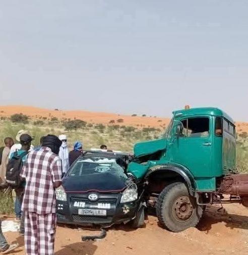 Sep 26 / التعليقات حادث سير يؤدي بحياة شخصين على طريق نواكشوط واد الناقة بواسطة admin1 توفي شخصان، اليوم الجمعة، في حادث سير على طريق الأمل، وقع قرب قرية الغشوات (واد الناقه) ناتج عن تصادم شاحنة وسيارة تويوتا. وقالت منظمة "معاً للحد من حوادث السير"، في منشور على فيسبوك، إن الحادث تسبب في إصابة أشخاص آخرين بجروح متفاوتة الخطورة. جمعة, 2025/09/26 - 18:58