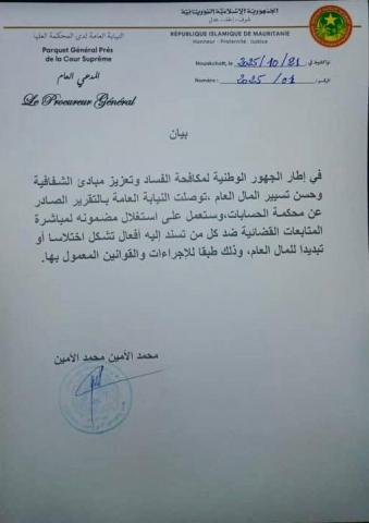 وأكدت النيابة العامة في بيان صادر عنها في وقت متأخر الليلة البارحة توصلها بتقرير محكمة الحسابات وسوف تشتغل على مضمونه، لافتة إلى أن ذلك "يأتي في إطار الجهود الوطنية لمكافحة الفسادو تعزيز مبادئ الشفافية".