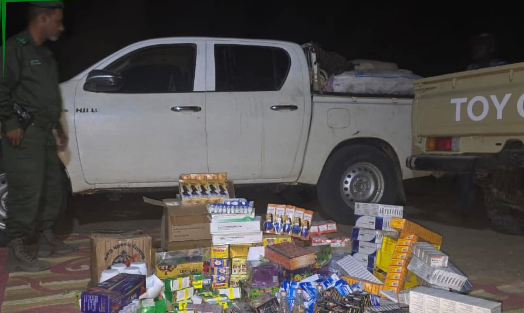 كما تمت مصادرة 35 كيلوغرام من الأدوية البيطرية ومواد التجميل والمبيدات والسجائر.