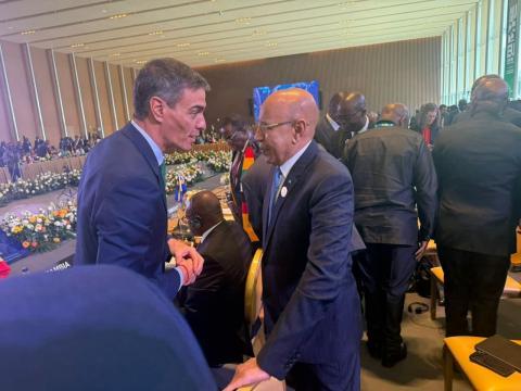 التقى رئيس الجمهورية محمد ولد الشيخ الغزواني اليوم الاثنين بالعاصمة الأنغولية لواندا الرئيس الفرنسي امانويل ماكرون، ورئيس الحكومة الاسبانية بيدرو سانشيز، ومسؤولين آخرين على هامش القمة السابعة بين الاتحاد الإفريقي والاتحاد الأوروبي.