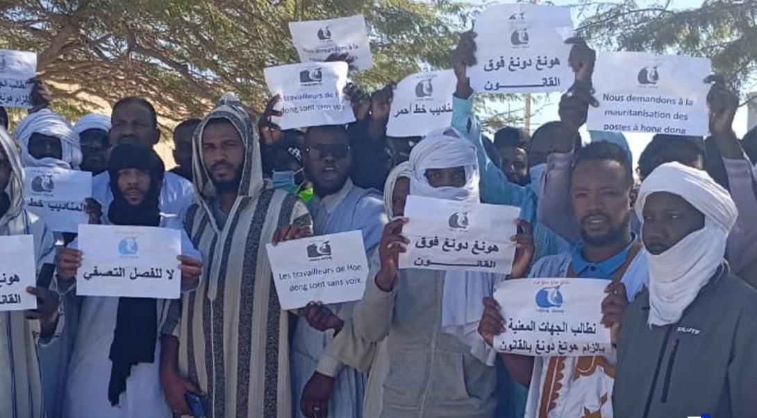احتج عدد من عمال الشركة الصينية "بولي هوندونغ" صباح الجمعة قبالة ولاية نواذيبو، احتجاجا على ما قالوا إنها "عقوبات تعسفية".